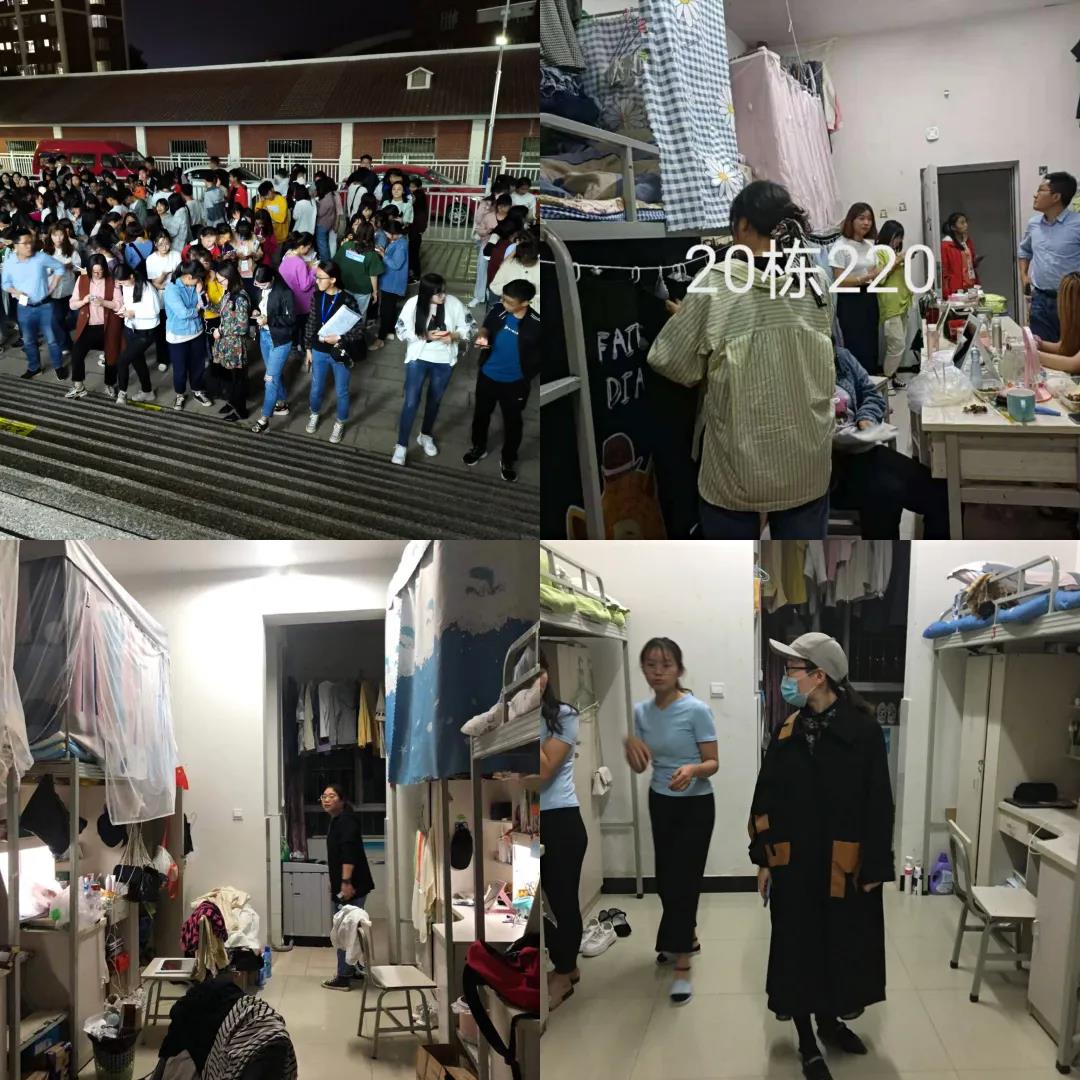 - 为落实学生公寓各类安全隐患排查情况,进一步提高学生安全意识,倡导学生文明住宿。4月14日晚,教育学院全体辅导员及自律委学生共计120人对教育学院学生公寓进行全面交叉大检查,重点检查公寓中心检查不合格宿舍并排查各宿舍安全隐患。 此次检查,各辅导员老师主要查看学生宿舍是否存在违规用电和使用大功率电器、酒精炉、电饭锅等危险物品以及宿舍环境是否清洁卫生和是否存在安全隐患等。从检查情况