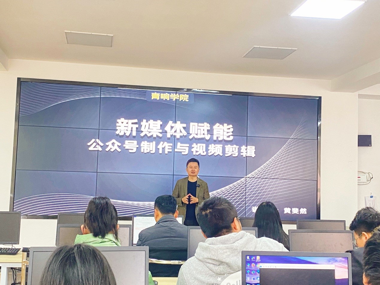 2021年11月30日,为了保证培训的顺利进行,我院市场营销、电子商务教研室部分老师出席了培训,网络营销实践中心主任臧庆堂、副主任许霄及数字网络营销实践中心的学生和我校商学院的部分学生参加了培训。特别邀请了云南青响文化传播有限公司刘夕野老师和黄斐然老师来为大家做培训,本次培训主题为公众号制作与视频剪辑。