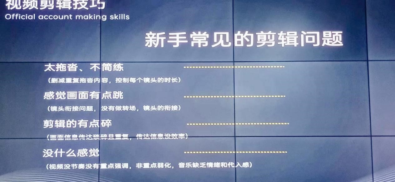 对于新手常见的剪辑问题,黄斐然老师列举了新手容易入门的软件,并给出了总结,新手常见的剪辑问题:拖沓、不简练、画面跳、剪辑碎片化、没什么感觉。