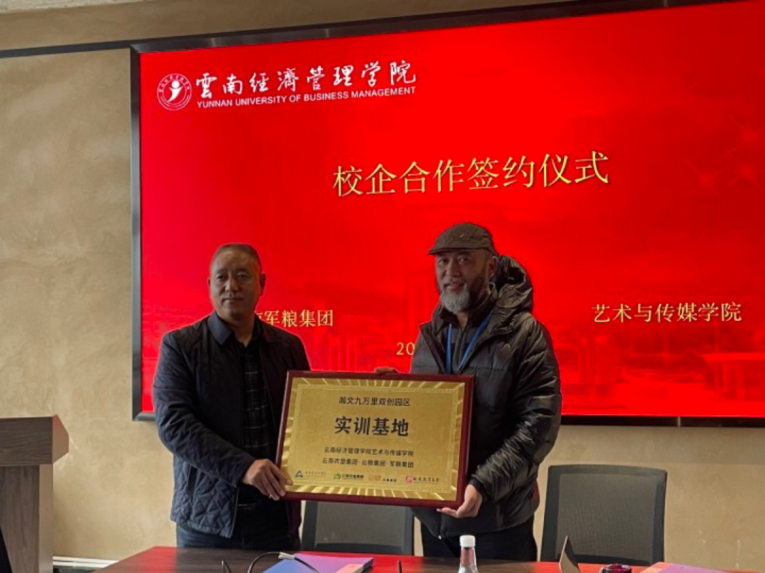 同时表达了贵集团与艺术与传媒学院的合作满怀信心,充满期待?;嵋樽詈?,艺术与传媒学院院长农伟与云南军粮集团董事长蒋强进行了签约授牌。