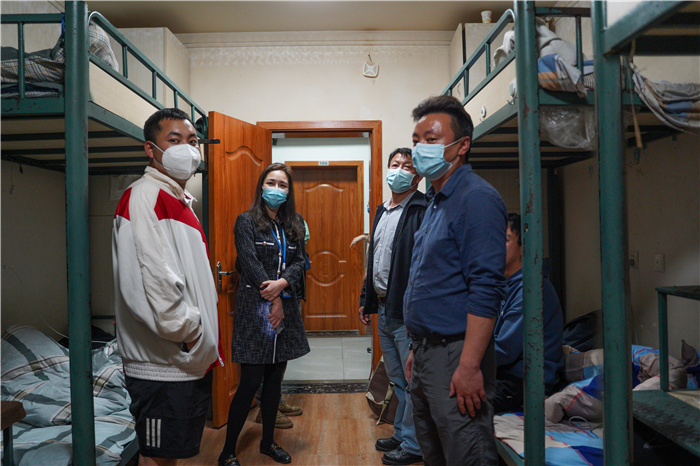 海源校区医学院由常务副院长许银凤、党委副书记李楠、副院长苏友娣,理工校区由党委副书记王超分别陪同校领导到学生宿舍看望慰问同学们。在和同学们交谈时,亲切询问同学们是否在疫情防控加紧之下学校实行封校管理大家是否可以适应,生活上有没有什么困难,线上上课是否可以正常开展,也希望同学们适应新情况,优化时间安排,高质量完成线上学习任务,同时做好宿舍卫生,加强体育锻炼,提高身体素质,保持健康积极的心态应对疫情,做好疫情之下的学习安排。
