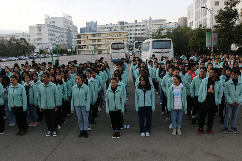 欢送2019,喜迎2020。云南经济管理学院医学院于2020年1月1日上午8:00,在第二教学楼旗台前隆重举行元旦升国旗仪式。参加此次元旦升旗仪式的人员有:教师代表,国旗仪仗队全体成员以及各学生组织代表。