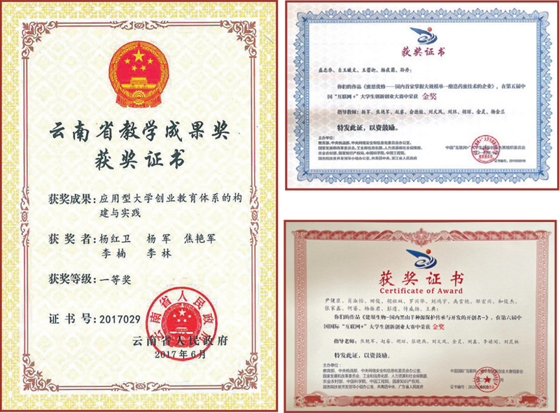 - 云南省高等教育教学成果一等奖2项